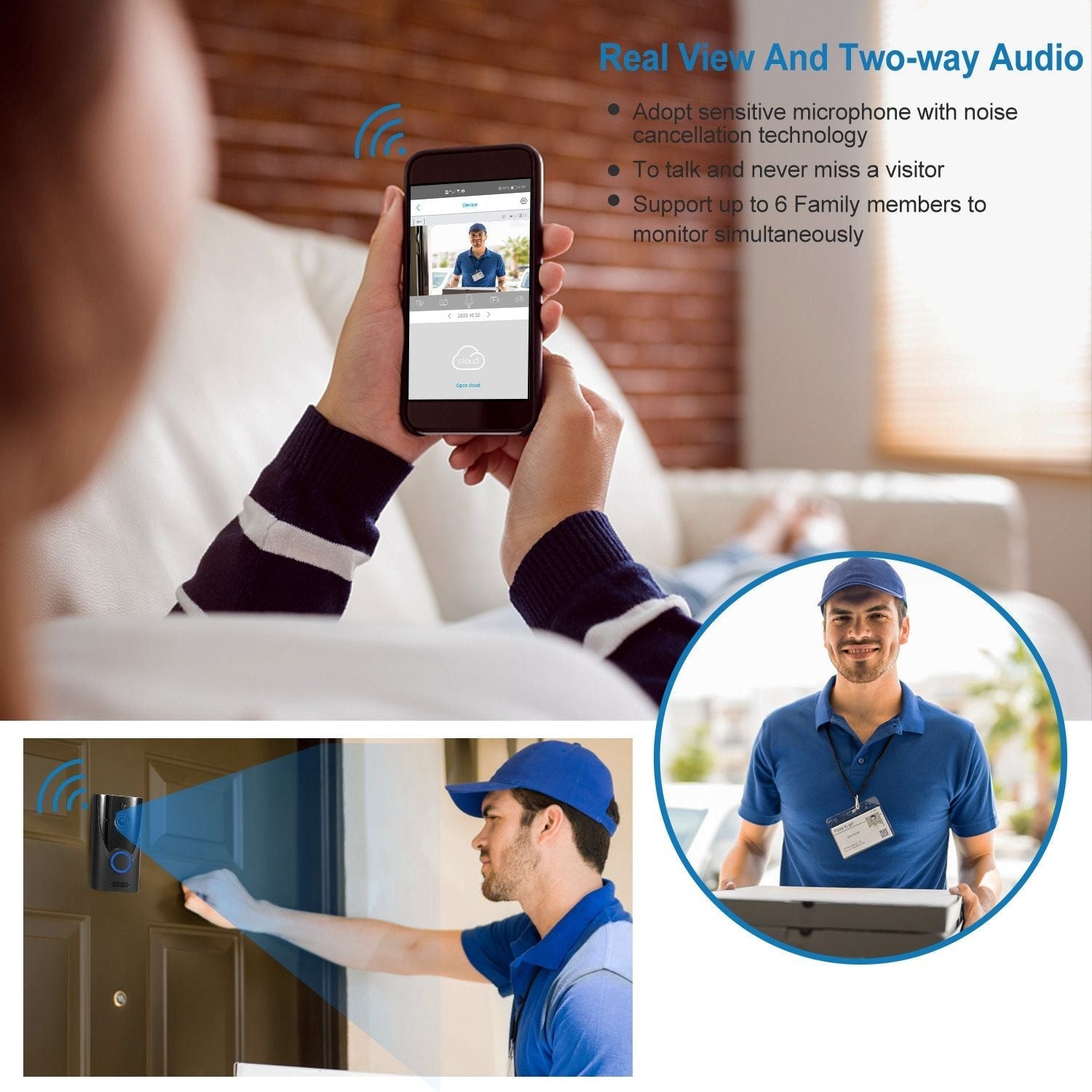 Upgrade your home security with this WiFi-enabled video doorbell, designed to let you see, hear, and speak to visitors anytime, anywhere. With a built-in 720P HD camera, it delivers clear video and smart features to keep your home safe and connected.