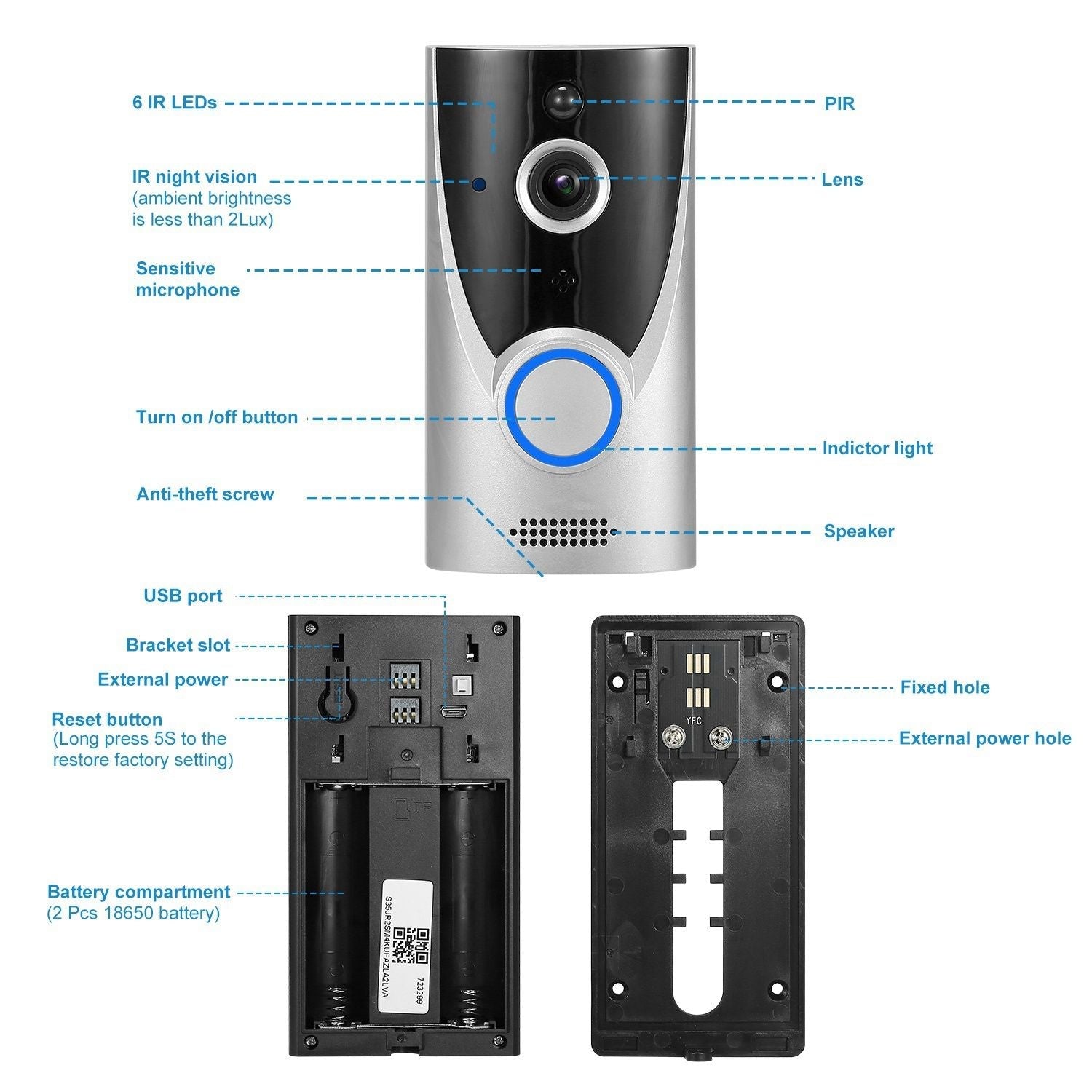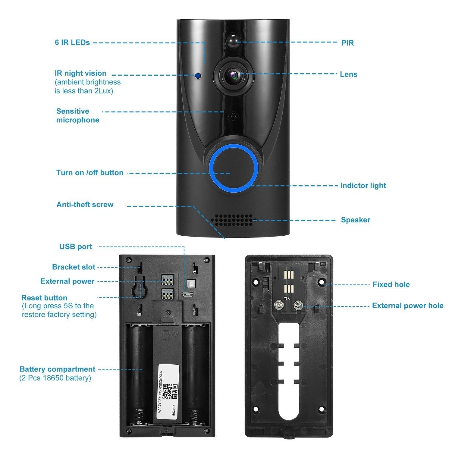 WiFi Video Doorbell Wireless Door Bell 720P HD WiFi Security Camera